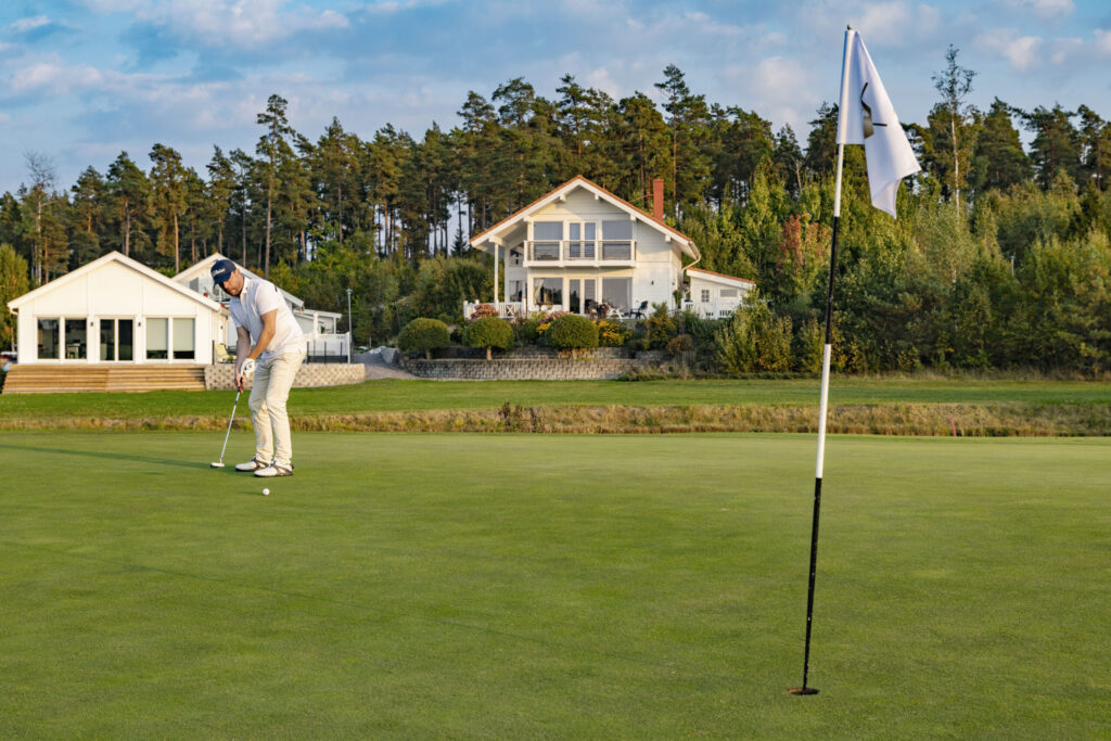Mauritzberg’s 18-hole championship course winds through ancient oaks, open meadows, and along the Baltic shoreline. A round here feels less like sport and more like a walk through a landscape painting. The Golf Gästhus awaits at the finish — cold drinks, a warm kitchen, and a terrace that overlooks the 18th green.